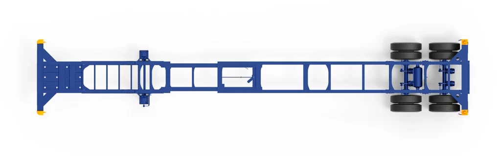 This chassis can efficiently carry either a 40′ or a 45′ ISO container, ensuring versatility in transportation needs.